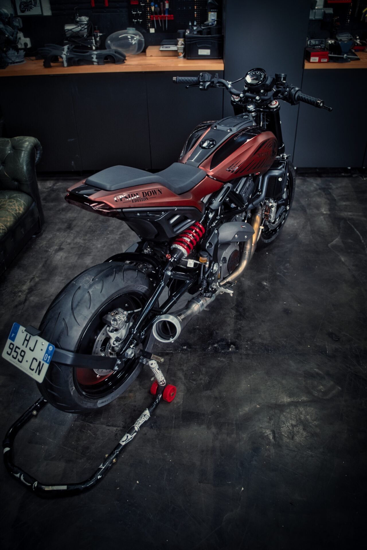 L'asphalte frémit. La Indian FTR 1200 Neuve, sublimée par French Moto à la sauce Upside Down, rugit. Une bête sculptée pour l'émotion pure, où chaque détail crie l'audace et la performance. Le rêve prend forme, prêt à dévorer la route. Son cœur bat à l'unisson du vôtre, promettant des sensations inédites. C'est plus qu'une moto, c'est une légende qui vous attend.