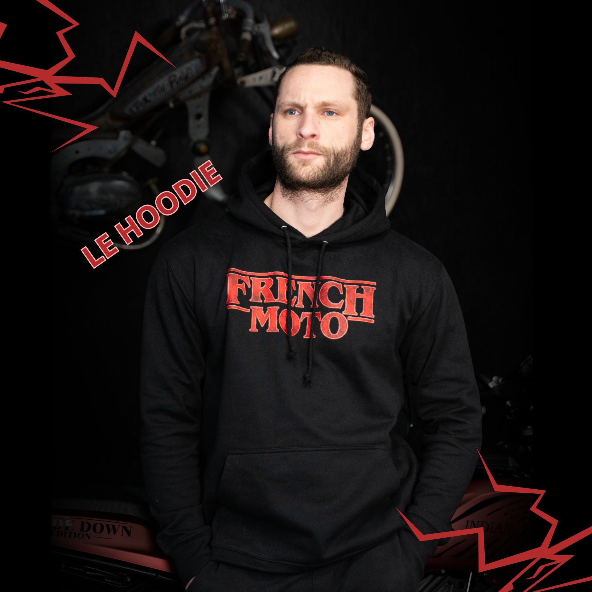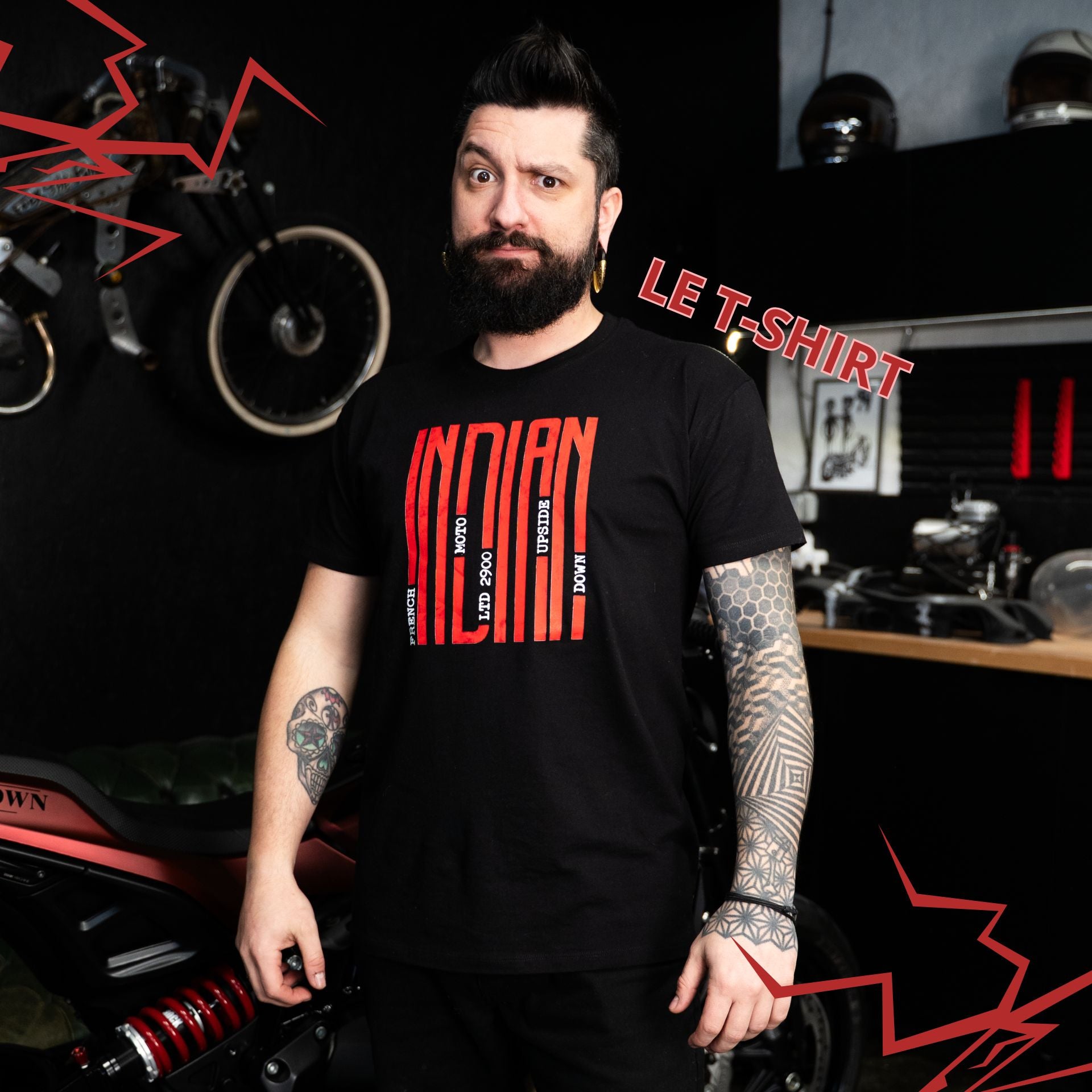 Ce T-shirt Premium 100% coton noir, et ce Hoodie sont bien plus que de simples vêtements. En Édition Limitée et imprimés avec précision en DTF dans nos ateliers français, chaque article acheté t'offre 1 chance sur 2900 de remporter la INDIAN FTR 1200 Neuve, préparé et Unique au monde, d'une valeur de 21.000 €.