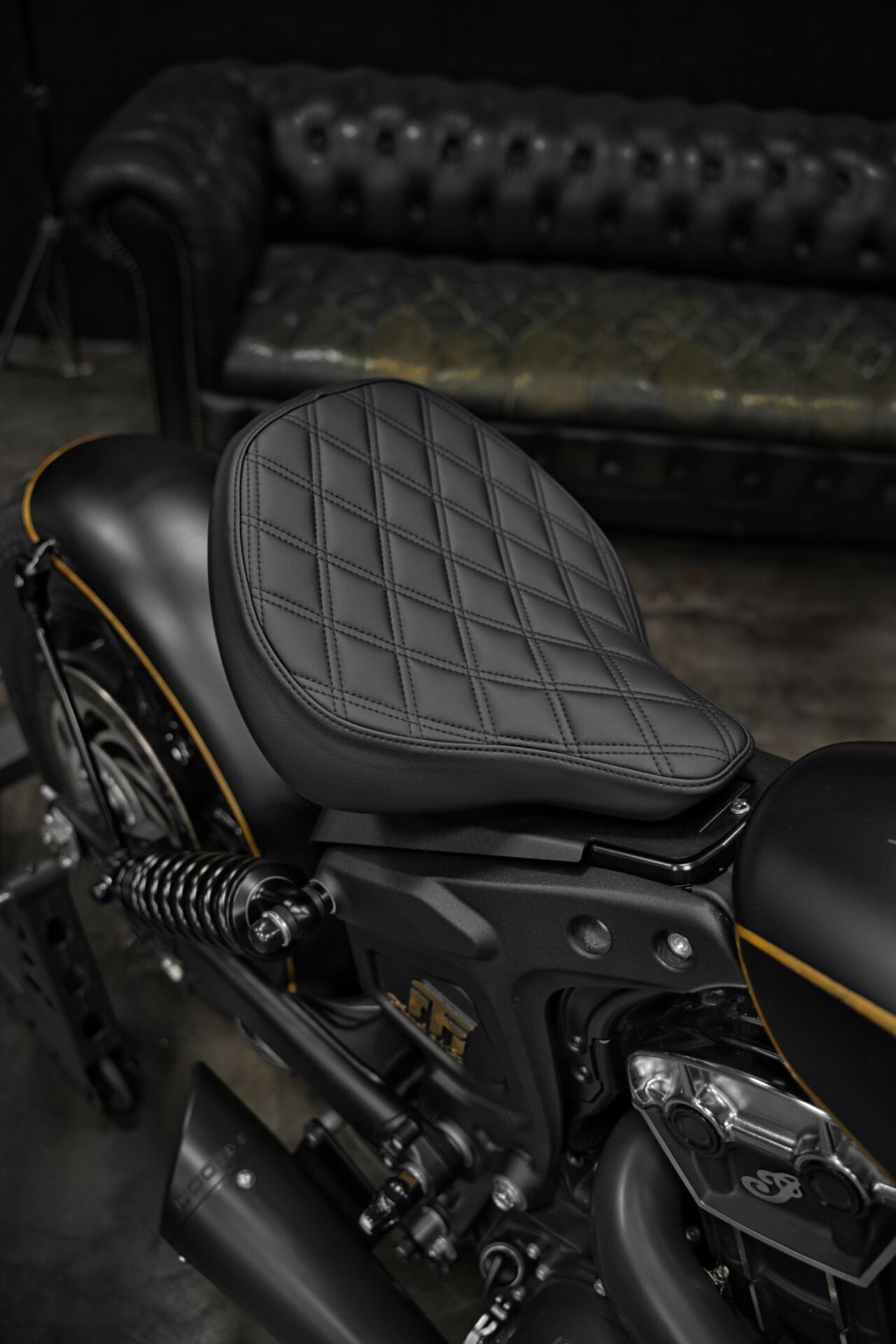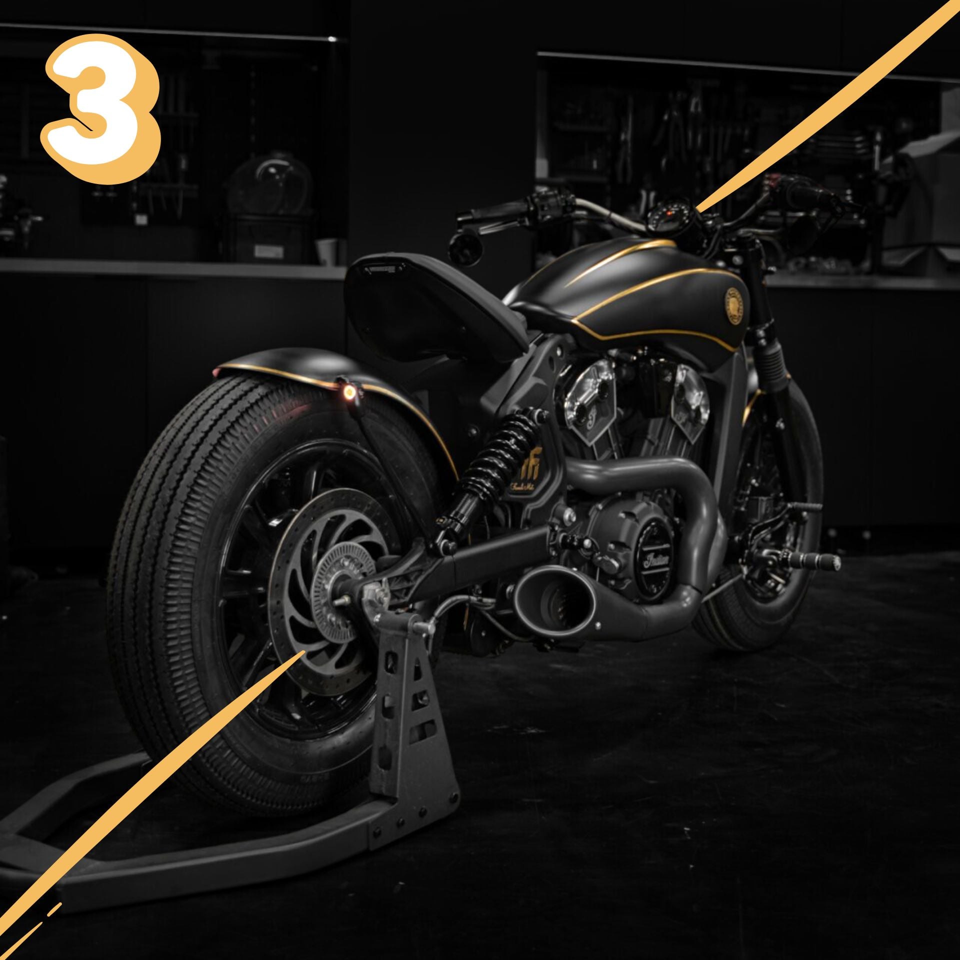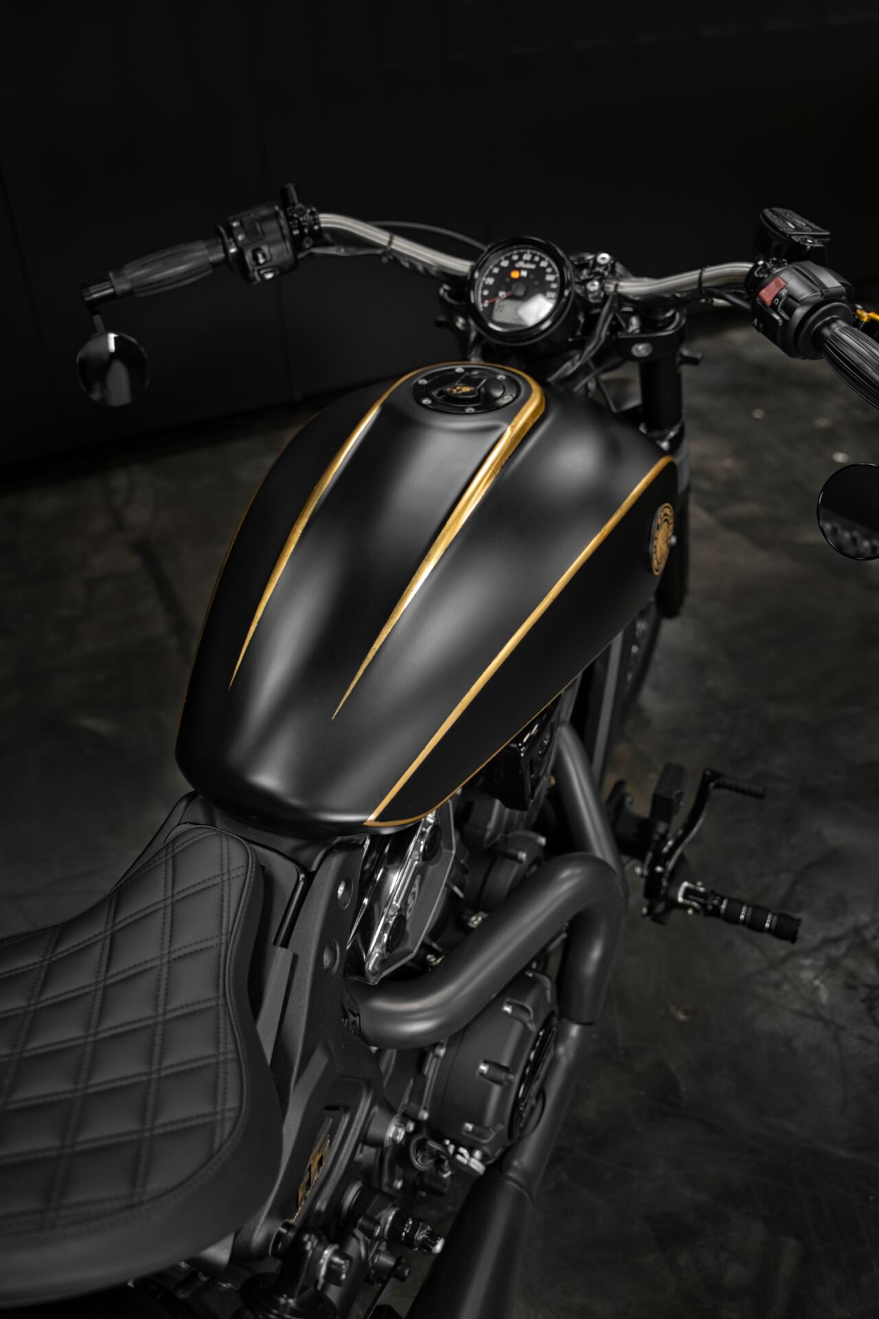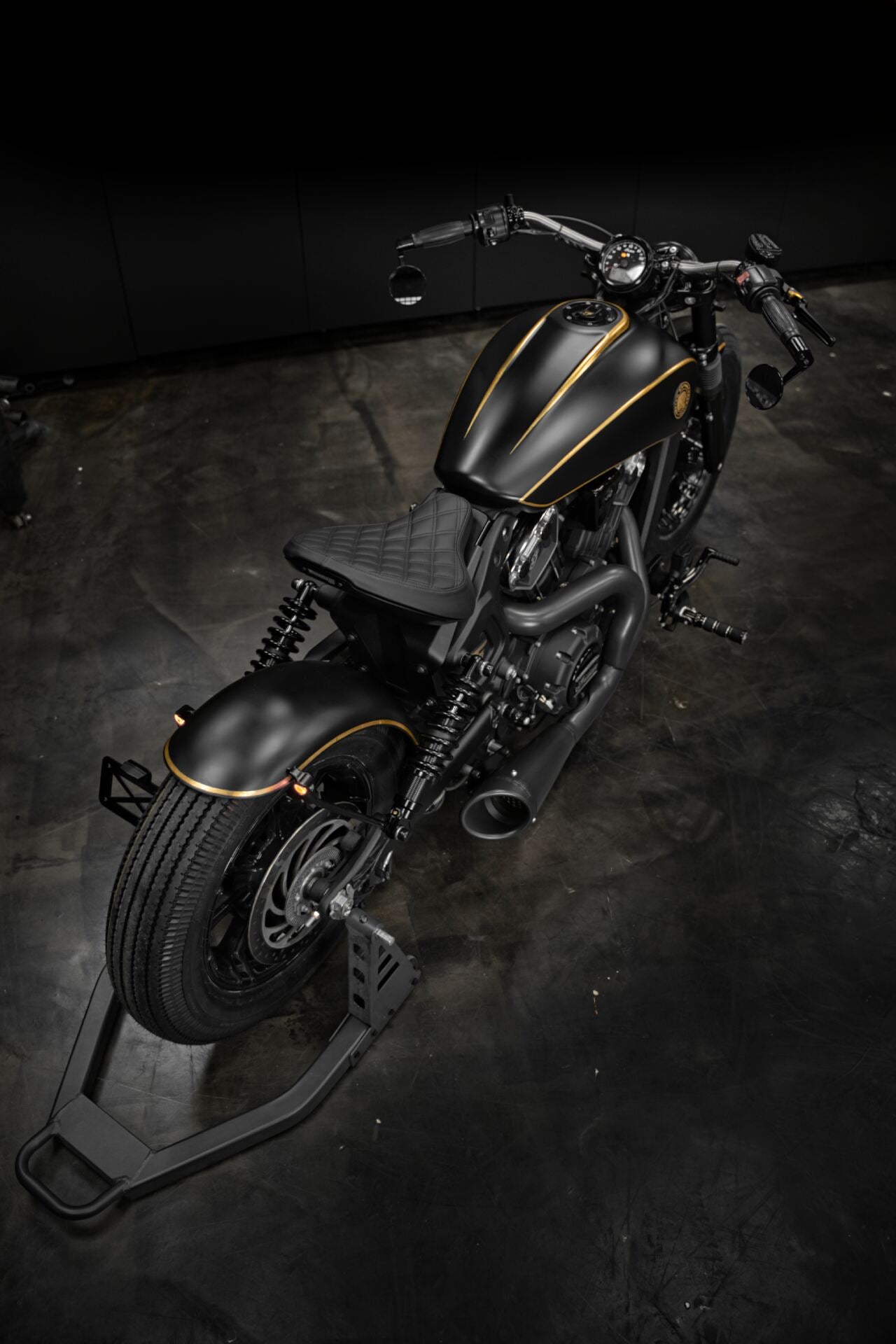 L’Indian Scout Bobber préparée par l’atelier French Moto, baptisée Golden Era, transcende l’idée même du custom. Entièrement façonnée à la main au fil de centaines d’heures de travail, elle se pare de subtiles applications de feuille d’or véritable, révélant un sens du détail réservé aux pièces d’exception.