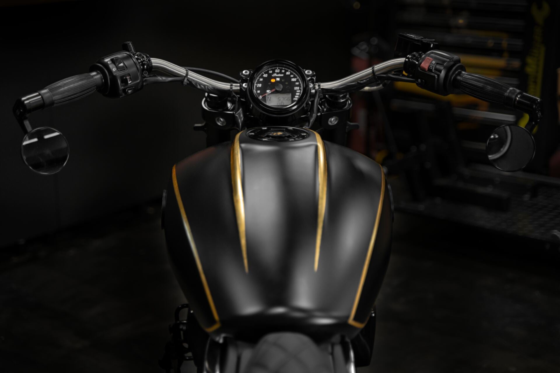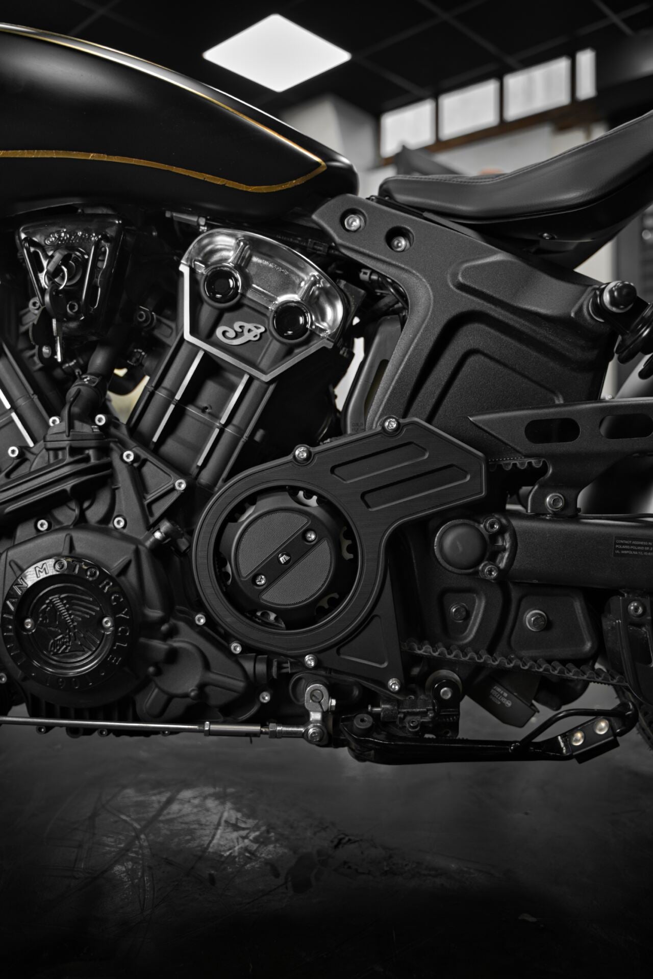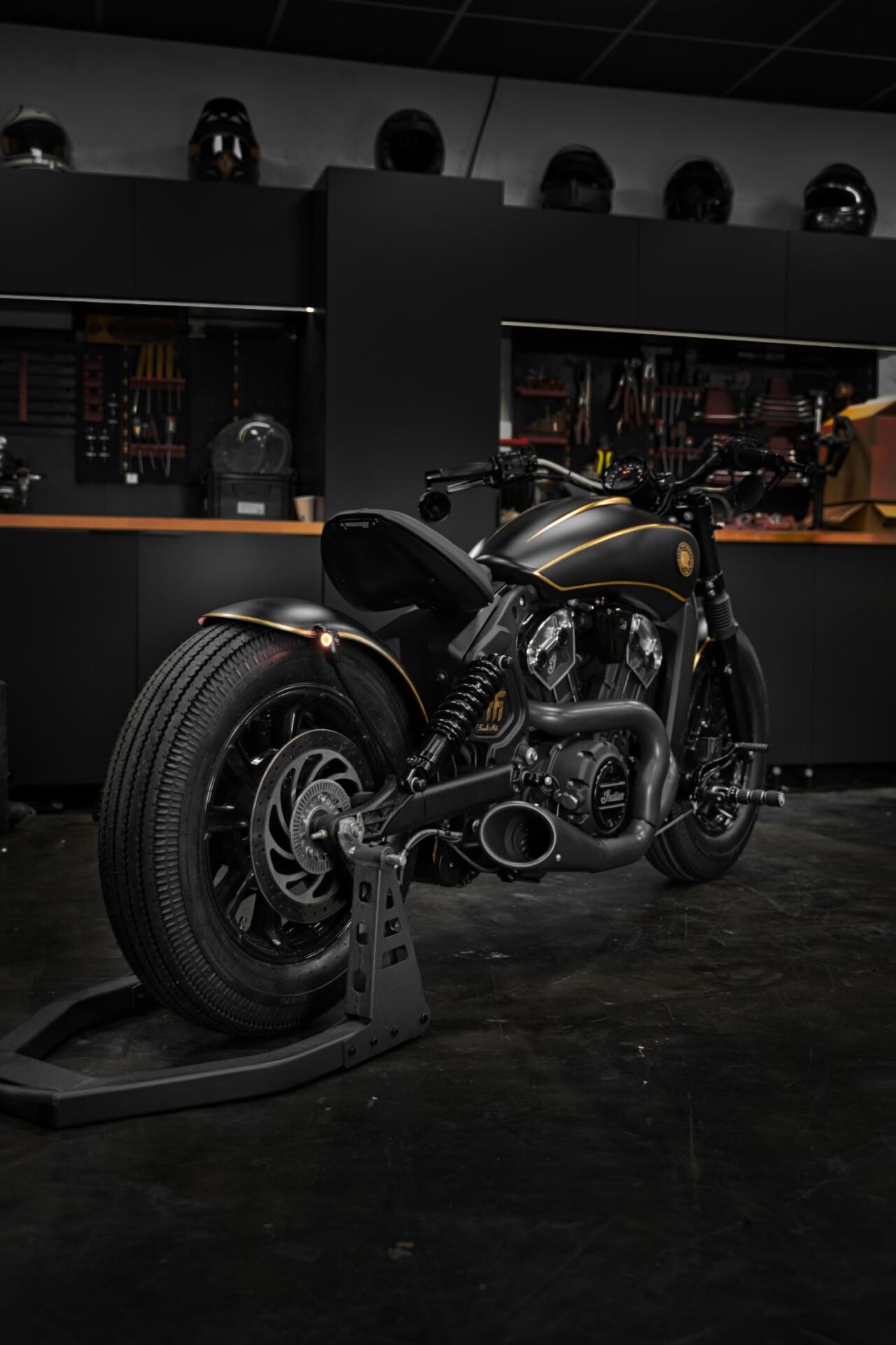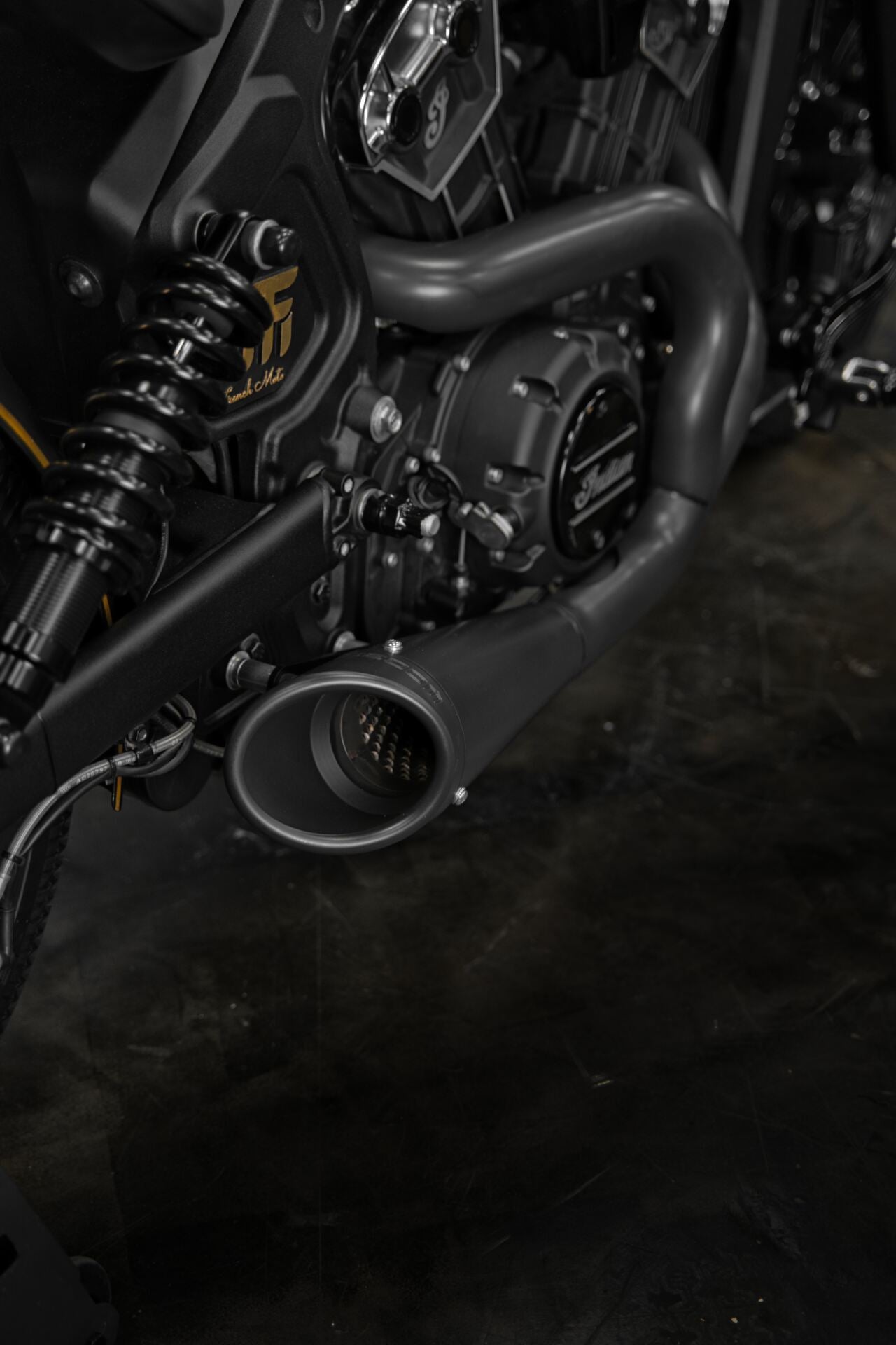Nous mettons en avant des vêtements à la hauteur de cette prépa unique au monde, sur base d'Indian Scout Bobber, Made in French Moto.