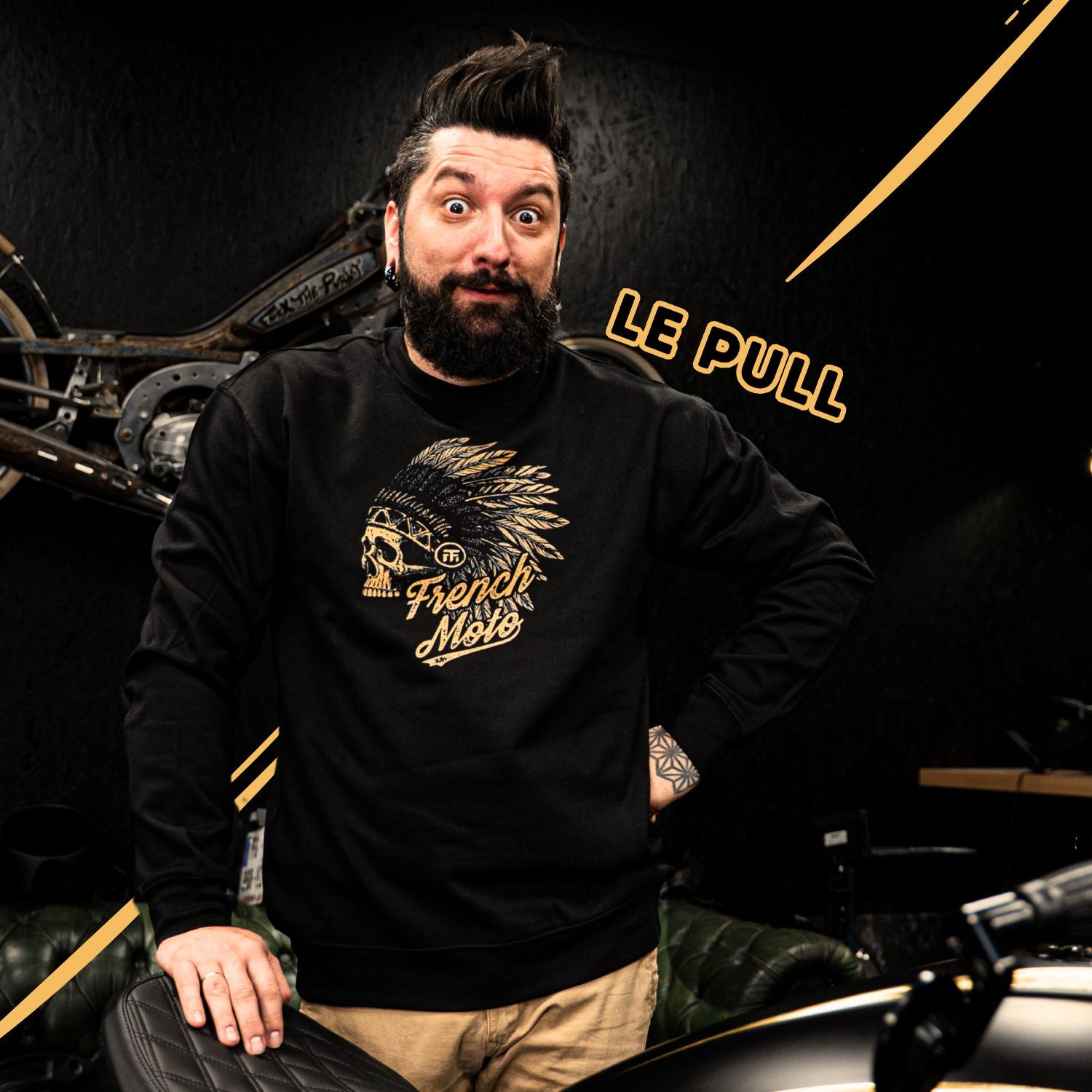 Ce T-shirt Premium 100% coton et ce Sweat, de l'édition GOLDEN ERA, sont plus que de simples vêtements. En Édition Limitée et Imprimés en DTF dans nos ateliers Français, en bonus, 1 article t'offre 1 chance sur 3300 de Gagner l'INDIAN SCOUT BOBBER Préparée par French Moto, Unique au Monde et d'une valeur de 20.000 €.